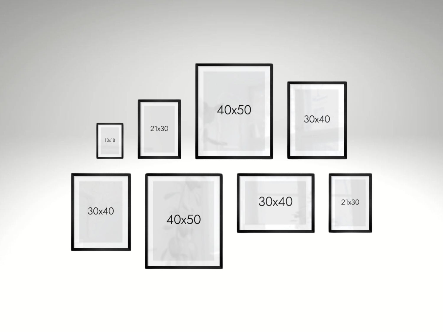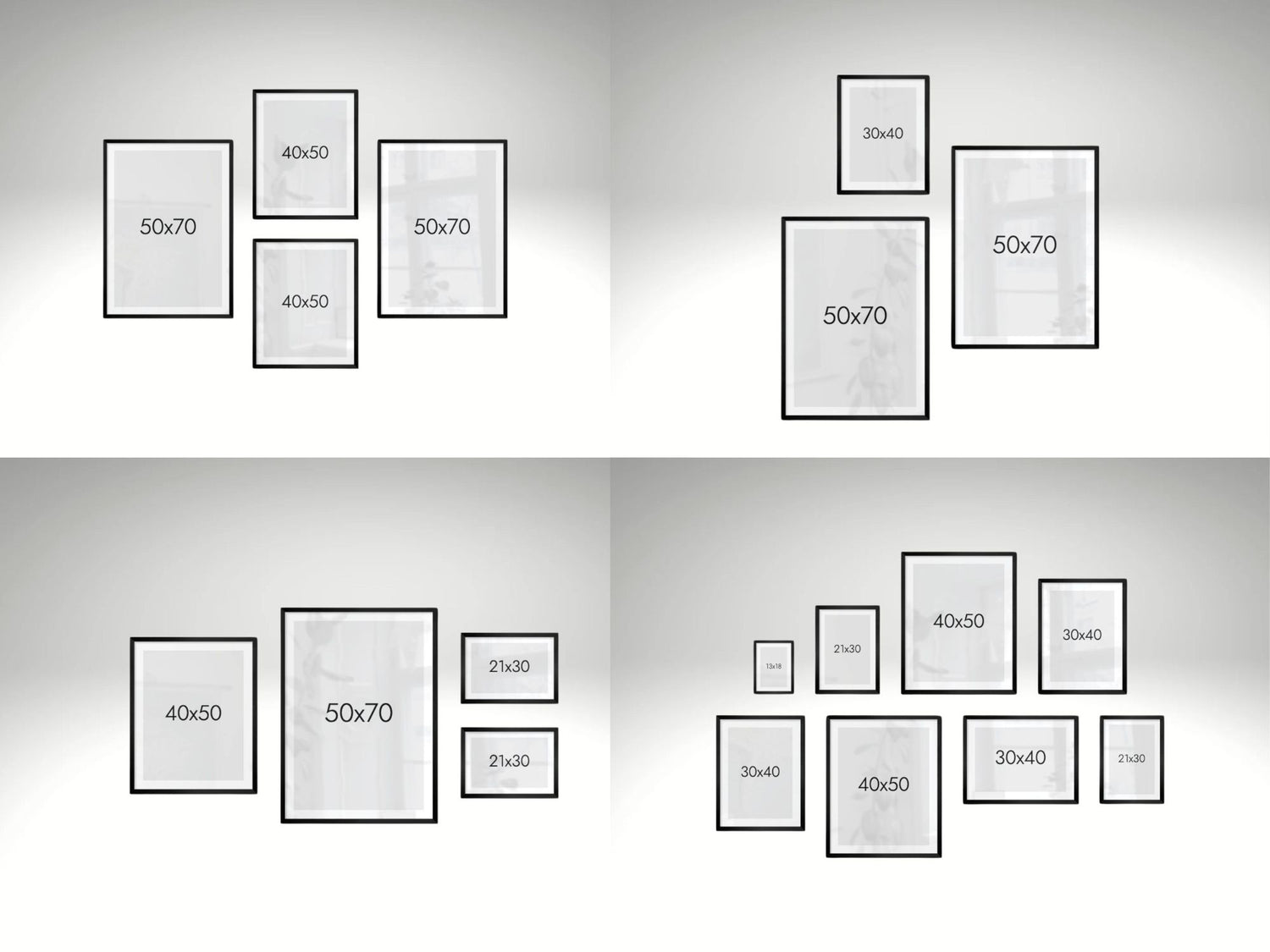 Tips: Lämna cirka 5–8 cm mellan ramarna för en ren och luftig känsla.