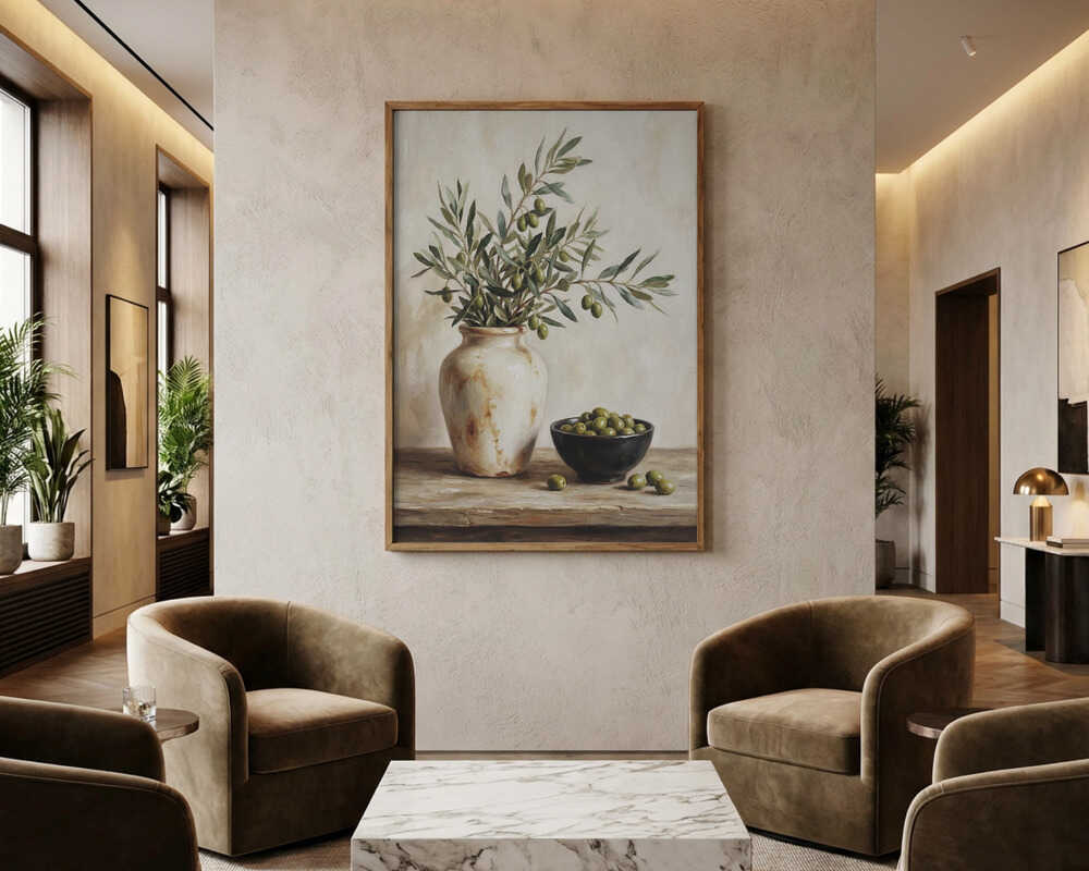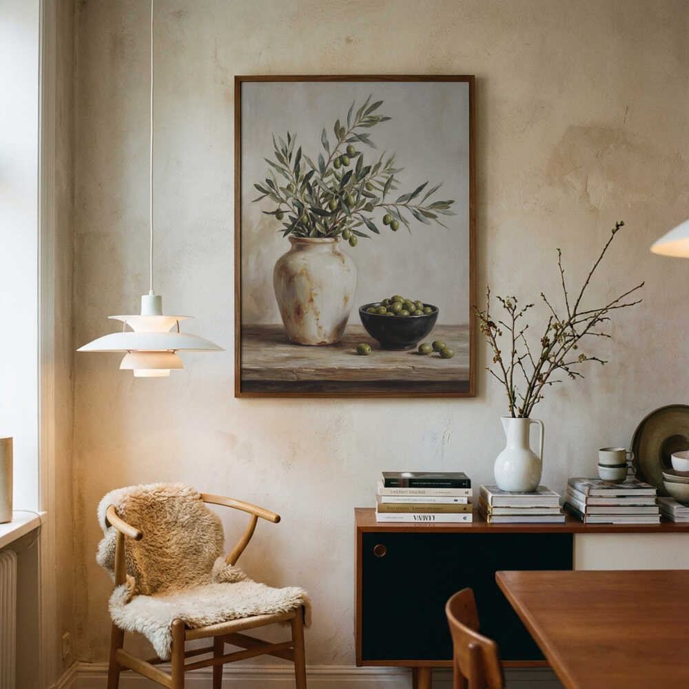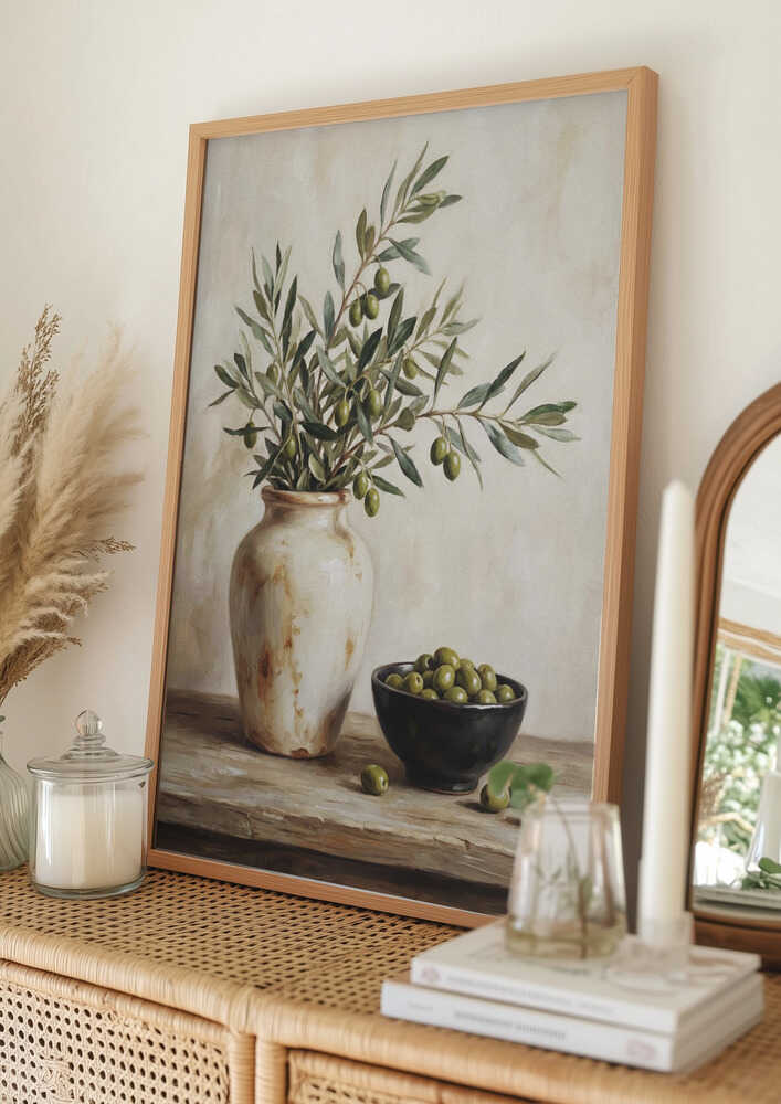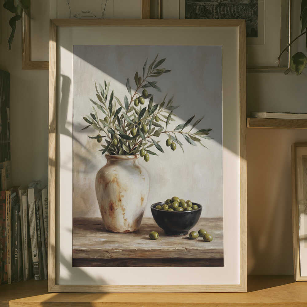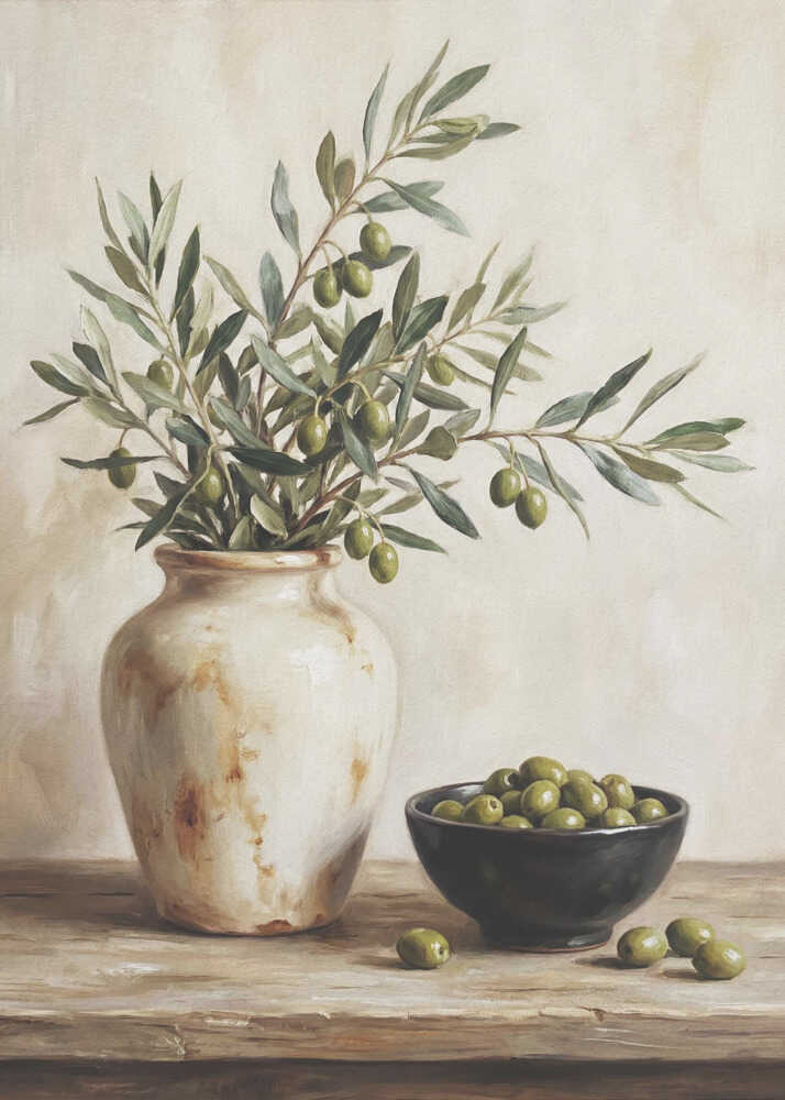En keramisk skål med oliver-poster