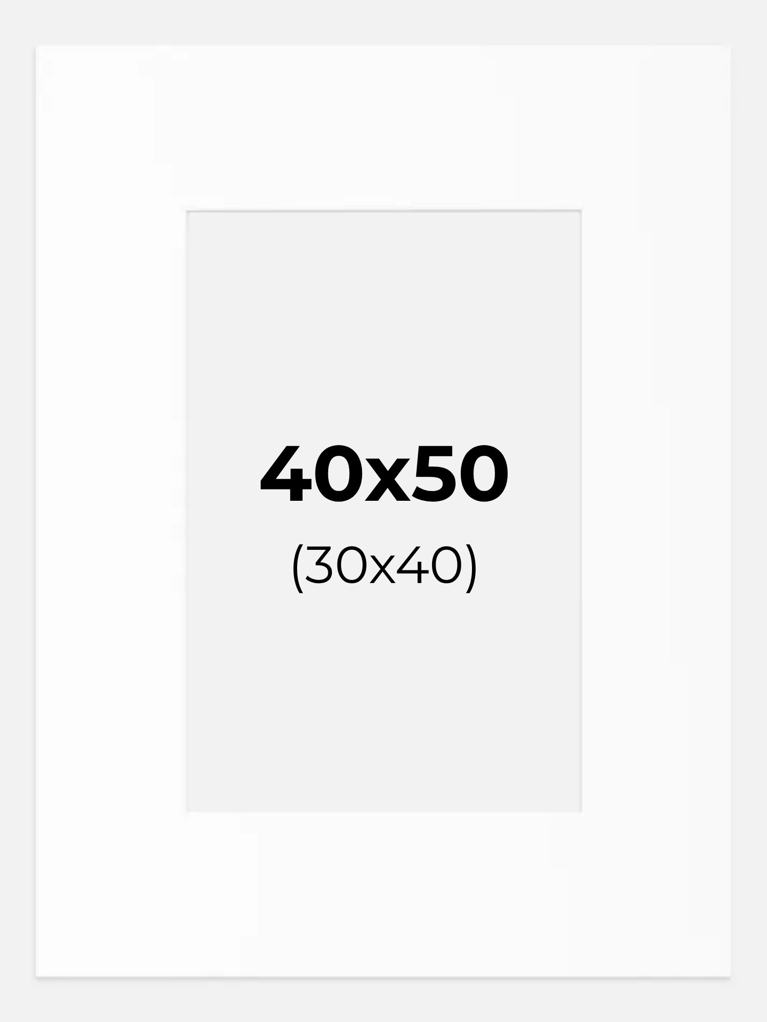 En vit passepartout i storleken 40x50 cm , utformad för att ge ditt konstverk en ren och elegant presentation. Den har en inneröppning på 30x40 cm , vilket gör den idealisk för att rama in affischer eller tryck i den storleken samtidigt som den passar perfekt i en 40x50 cm ram . Passepartouten skapar en snygg kontrast, framhäver ditt konstverk och ger din inramning en professionell finish.