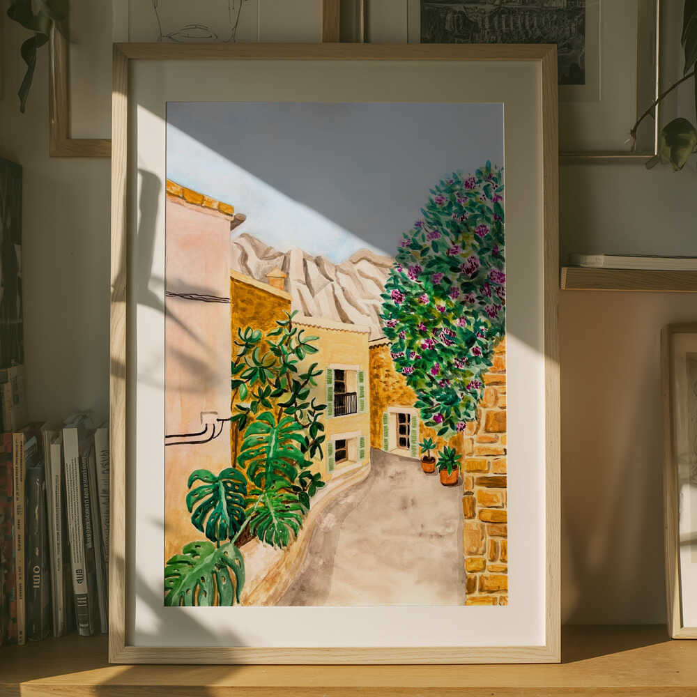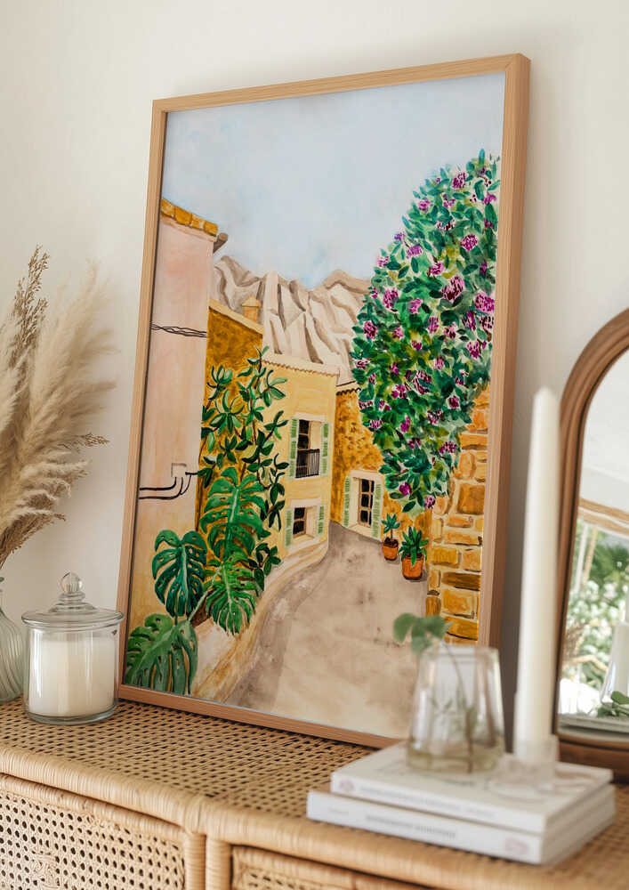 Solig europeisk bygata Poster
